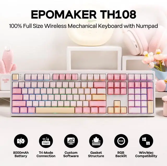 EPOMAKER TH108 Full Size 108 Keys Hot-Swap Mechanical Keyboard for Gaming/Office