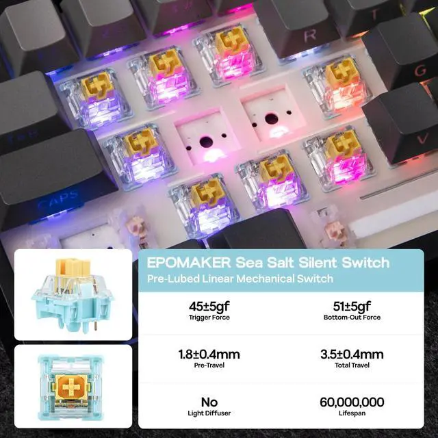 - Sea Salt Silent Switch: 5-pin Mechanical Linear Switch.
