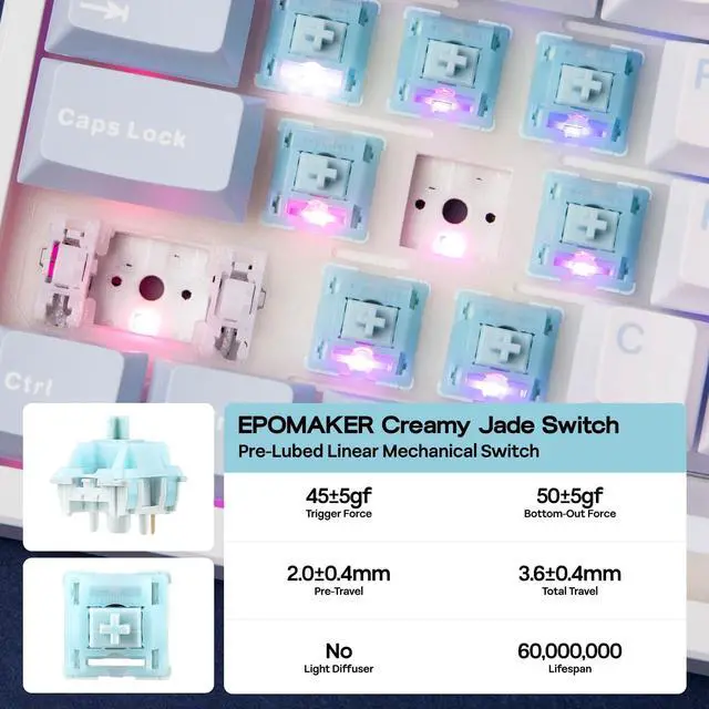 - Creamy Jade Switch: 5-pin Mechanical Linear Switch.