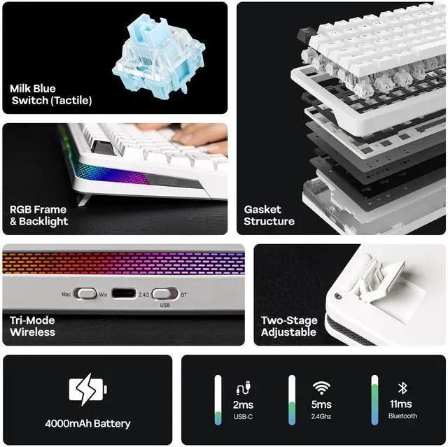 With 5 layers of Poron, IXPE, Silicone and Sound Enhancement Pad as dampening materials, the acoustic is upgraded to be milky and creamy.