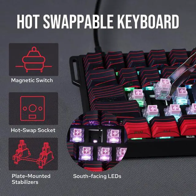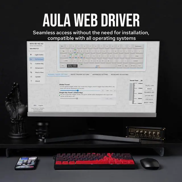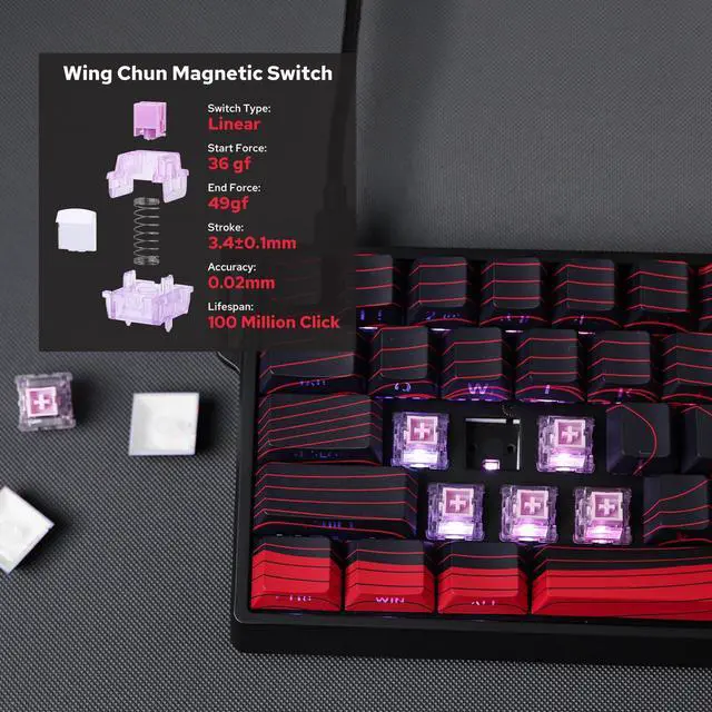 • Adjustable Actuation Point: The WIN60 features fully adjustable Hall magnetic switches, allowing you to customize each keys actuation point from 0.08mm to 3.4mm in 0.02mm increments, with Max version upgraded to 0.1mm to 3.4mm per 0.01mm. Take full control for rapid keypresses or ultra-precise typing tailored to your needs.
