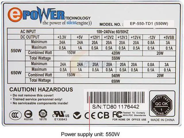 With 550W maximum output, this power supply delivers stable, reliable power for your home/office PC or a mainstream gaming PC. It features four 12V rails with a 6-pin and a 6+2-pin PCIe connectors that deliver robust power for demanding graphics cards. 100% Hi-Pot test and short circuit protection ensure safety for users and components. A 120mm fan keeps your power supply running at peak performance while operating at whisper quiet noise level.