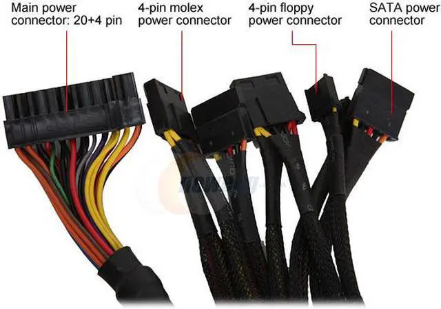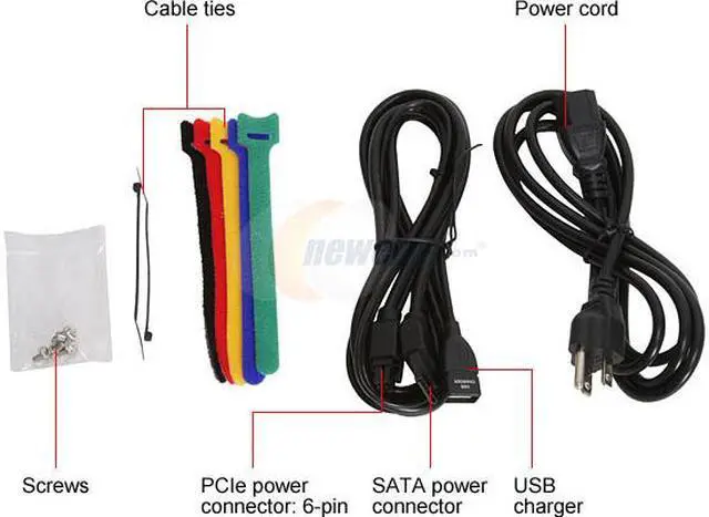 What highlights the Thunder Series is an exclusive 6-pin output for SATA and USB devices, located at the rear, next to the AC receptacle. Simply connect the included 6-pin cable, and you can directly charge a USB device and power a SATA device, no need to mess with internal connectors inside the computer case.