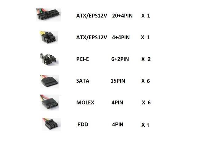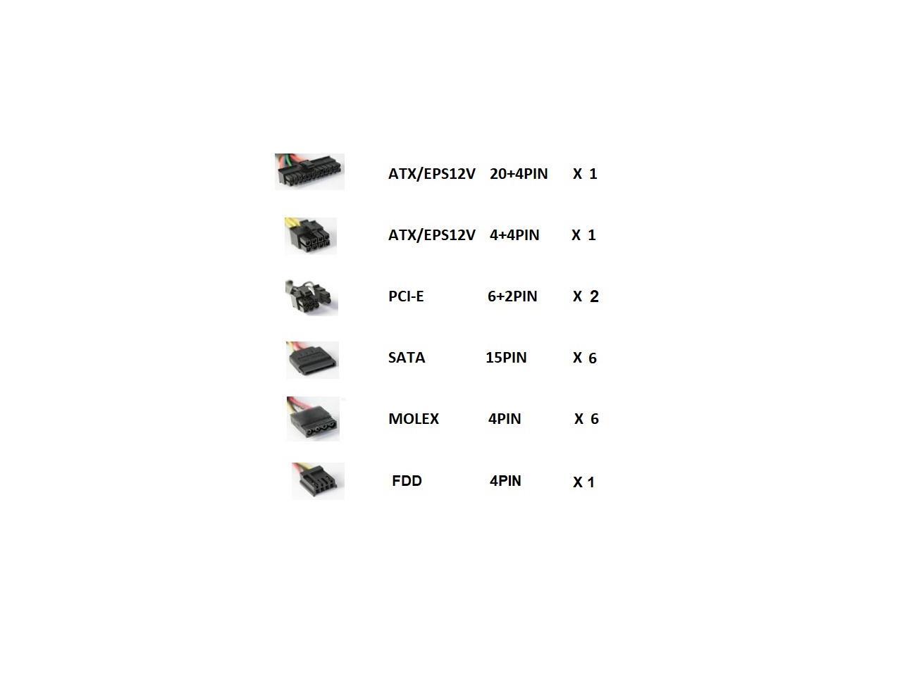 SATA X 6, MOLEX 4P X 6, FDD X 1