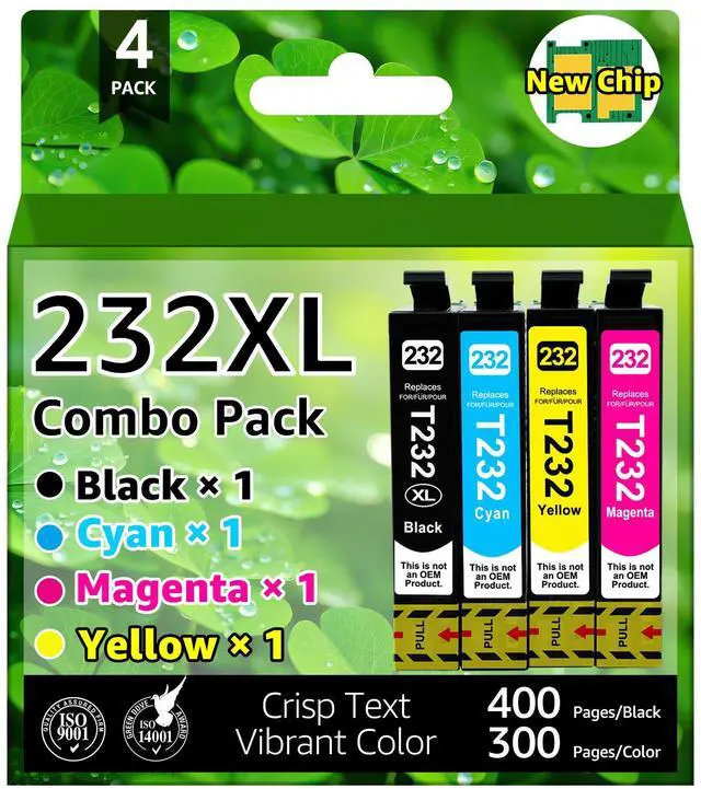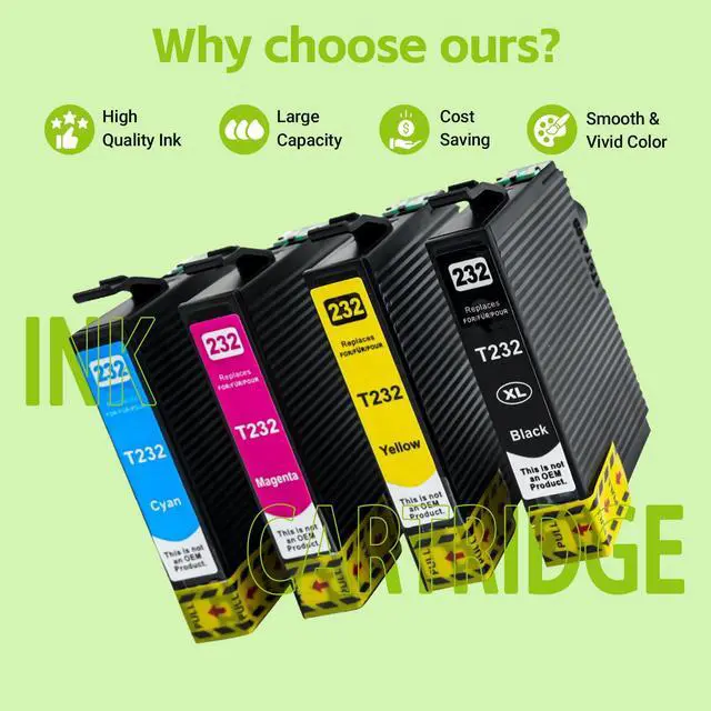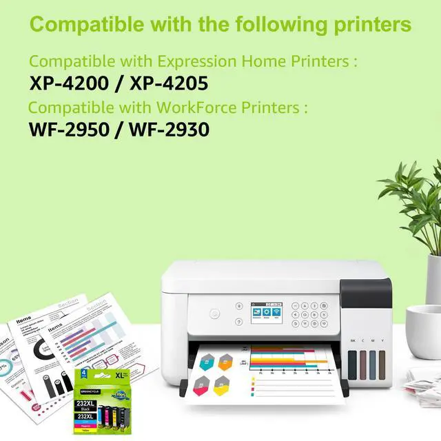 232xl ink cartridges combo pack, printer ink 232xl, XP-4200 ink cartridge, XP-4205 ink cartridge, XP4205 ink cartridge, WF-2950 ink cartridge, WF-2930 ink cartridge, 232 ink cartridges for printer, t232xl. GREENCYCLE Compatible Ink Cartridges Replacement for the following printer models: 232XL T232XL Ink
