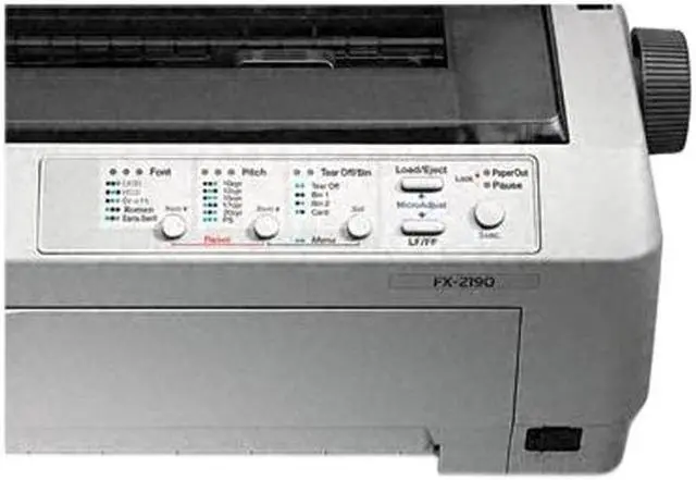 Effective paper handlingThe high-speed Epson FX-2190N races through forms up to seven parts thick and 16.5" wide through four convenient paper paths. The easy-to-install ribbon cartridge boosts productivity and ensures a low cost per page.