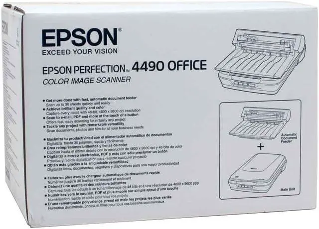 At last a scanner that lives up to its name. The Epson Perfection 4490 Office flatbed scanner delivers the performance a high demand office needs. The optimized paper feed mechanism will make short work of even the heaviest of scan jobs. The 4800 x 9600 dpi will keep the digital copies true to the originals. This versatile scanner will make short work of stacks of photos or text documents.