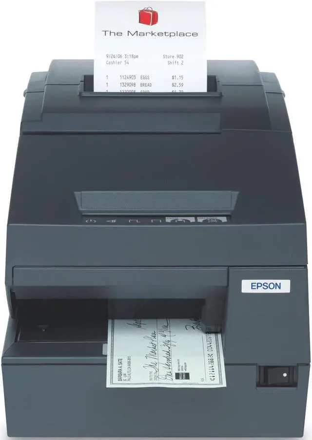 The ultra reliable, ultra-fast TM-H6000III TM-H6000III Multistation Printer is the ideal printer for grocery, general merchandise and banking. With its innovative QuickPass technology, the TM-H6000III Multistation Printerreads MICR and prints and endorses a check in a single pass. This shortens check printing time up to 50 percent over 'check flipping' options, which means faster transaction and throughput times. Implementing ECC using Epson's MICR reader with a great accuracy eliminates misreads and substitution errors and lowers returned check costs. It has high speed and reliability, crisp two color printing, future proof flexibility.
