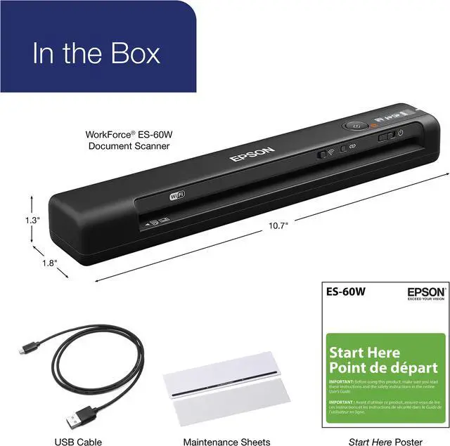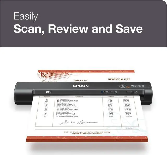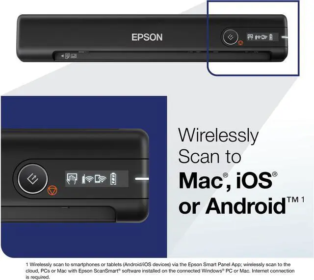 | Features | Fastest, smallest and lightest wireless mobile single-sheet-fed document scanner in its class - ideal for easy, on-the-go scanning