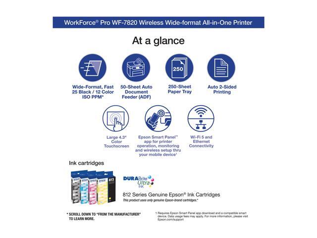 Epson WorkForce Pro WF-7820 Wireless All-in-One Wide-format Printer with Auto 2-sided Print up to 13" x 19", Copy, Scan and Fax, 50-page ADF, 250-sheet Paper Capacity, and 4.3" Color Touchscreen