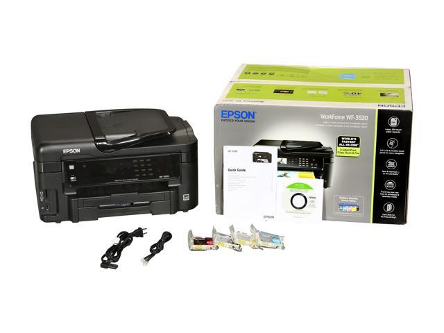 EPSON WorkForce WF-3520 15 ISO ppm Black Print Speed 5760 x 1440 optimized dpi Color Print Quality Ethernet (RJ-45) / USB / Wi-Fi InkJet MFC / All-In-One Color Printer