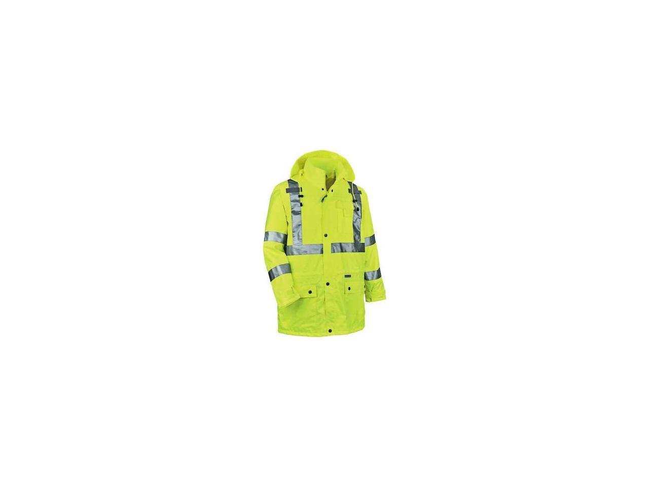 Ergodyne 24325 GloWear 8365 Class 3 Hi-Vis Rain Jacket, Polyester - X-Large - Lime