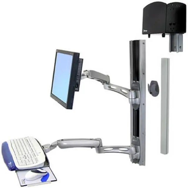 | Features | Creates a complete and compact workstation. Maximum ergonomic comfort—effortlessly position your LCD and keyboard where you need them. Save space—fold up the workstation tight against the wall when not in use. Integrated cable management and cable channels organize and route cables out of the way. Easily adjust height of components on Wall Track by loosening set-screws. Open design for future hardware upgrades. Convenient bi-focal viewing: Screen lowers and positions for optimized viewing by users with bi-focal glasses. |