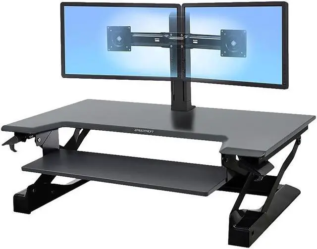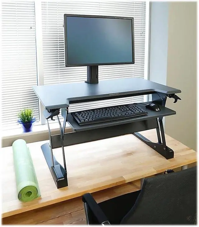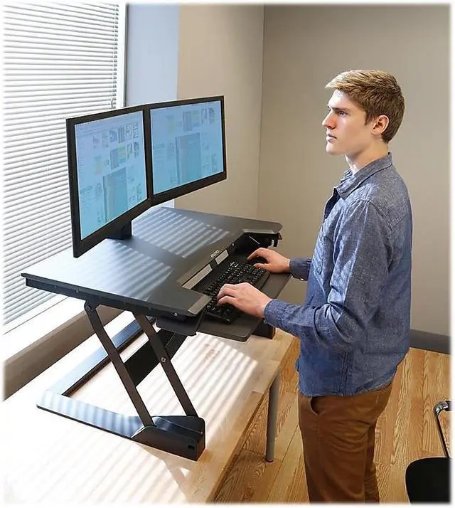 Presenting an ultra easy standing desk solution, which quickly converts a tabletop into a healthy sit-stand workstation. Simply place the WorkFit-TL on an open surface, stand up and youre ready to work! WorkFit-TL features a larger keyboard tray and wider worksurface and saves space because it moves straight up and down. Extremely stable throughout its range of motion, one can freely lean on it while working without worry of tip or height-drop.