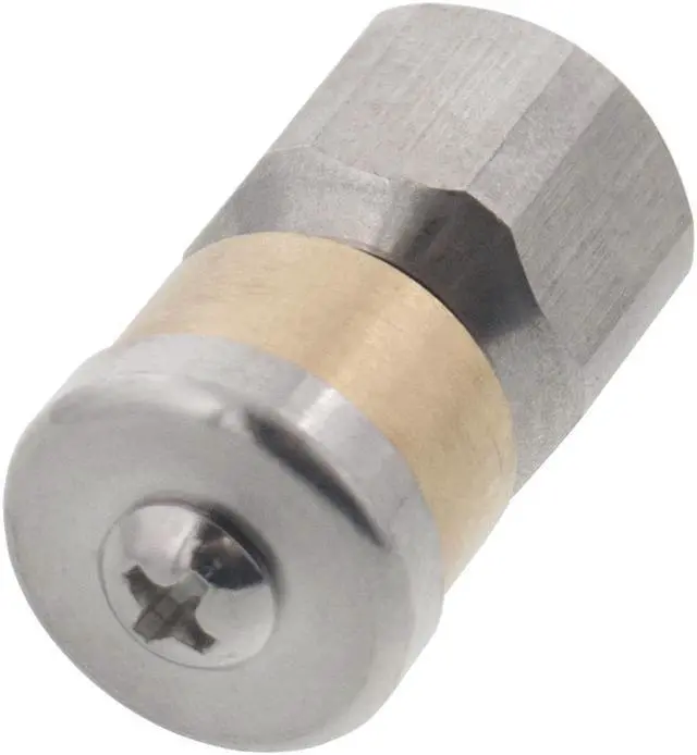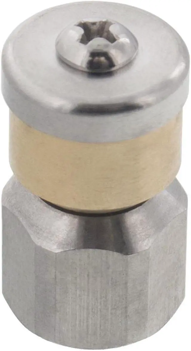 Erie Tools 1/4-inch rotating sewer jetter drain cleaning nozzle is with 10.0 orifice. Features three (3) rear-facing jets that move the nozzle through the drain and flush out debris. The nozzle will handle 4,000 PSI and temperatures up to 200° F.