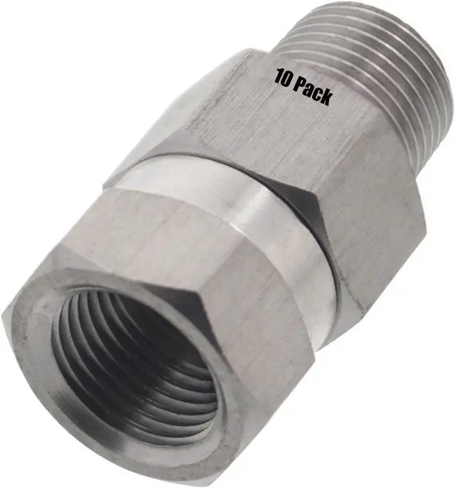10 pack of Erie Tools 3/8-inch stainless steel MNPT to FNPT swivel couplers for pressure washer hoses. Maximum pressure of 3,200 PSI. Designed and built to perform in the toughest pressure washing applications.