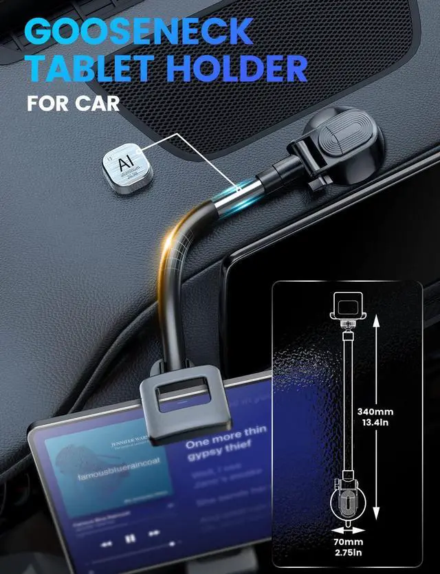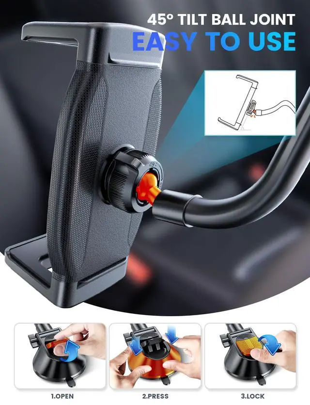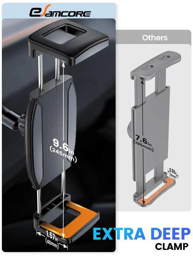 | Large clip for thick cases | Disk Diameter: 3.1” | Unobstructed View iPad Mount | 15-inch height | 15-inch height | 3 In 1 Biaxial Extension Arm |