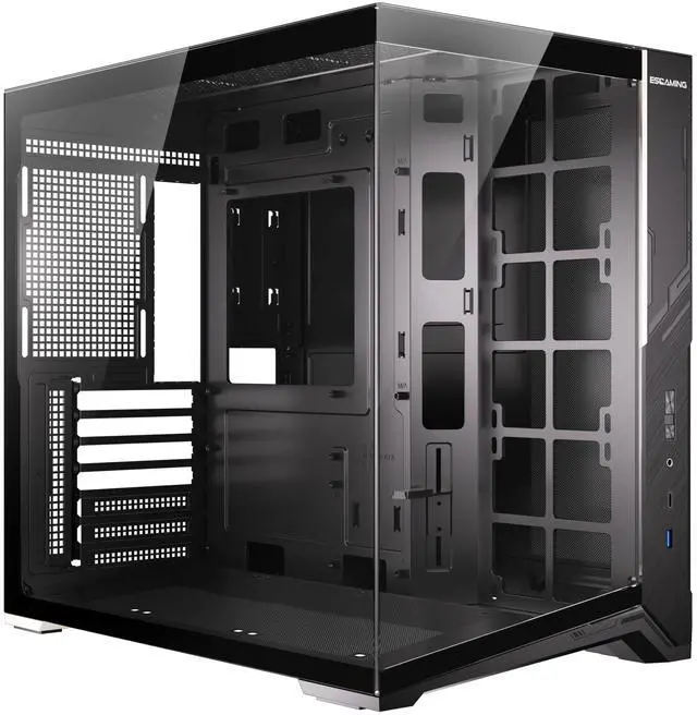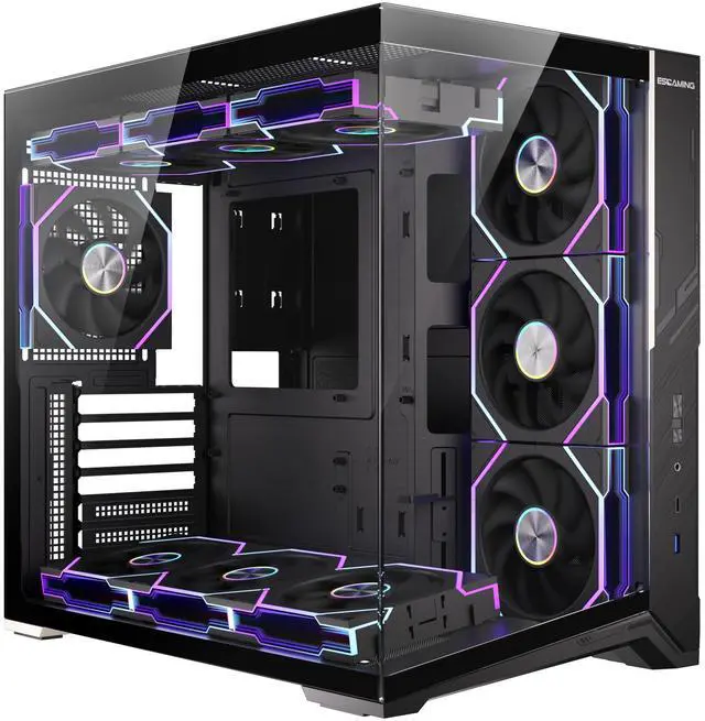 ESGAMING ZEROMAX ATX PC Case Mid-Tower Airflow Gaming Computer Case | 8° Slanted Base| Tempered Glass Panoramic View | Fully Ventilated | Black-No Fan
