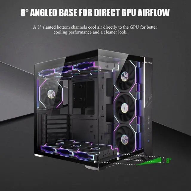 - Enhanced Cooling Airflow - The 8° angled bottom structure improves fresh air intake from underneath the case, promoting better internal airflow and helping keep high-performance GPUs cooler during heavy workloads.