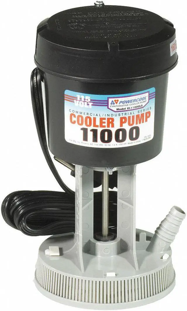 PUMP, RE-CIRCULATING, PLASTIC HOUSING, MOTOR, STEEL SHAFT Construction, Max. Amps 1.5, For Use With COMMERCIAL SIZE EVAPORATIVE COOLERS, Function SUPPLY WATER TO DISTRIBUTION ASSEMBLY, UL, Includes PUMP AND NIPPLE. This item has been restricted from sale in the following state (s): []