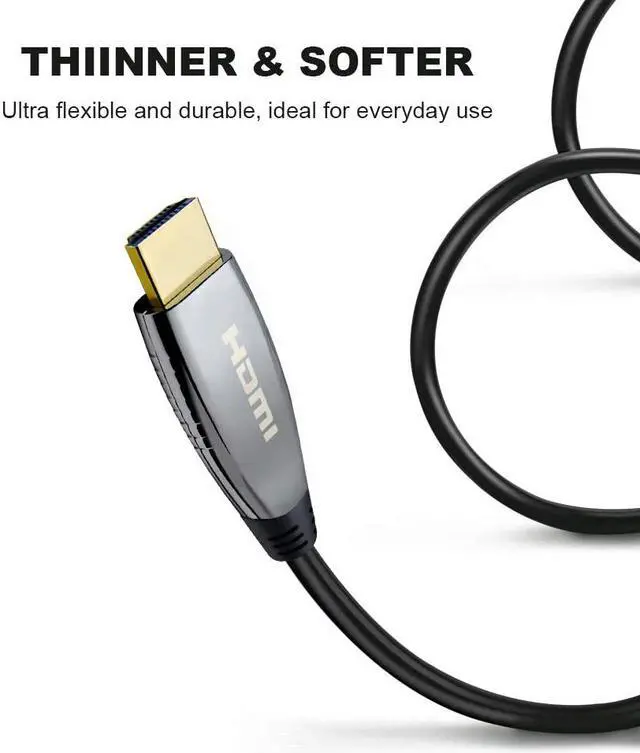 Real 8K HDMI Fiber Optic Cable: Our latest 8K HDMI 2.1 fiber optic cable supports maximum video resolutions of 8K@60Hz and 4K@120Hz. It also downwards compatible HDMI 2.0, 1.4 and 1.3. Featuring 100% Real 8K quality, each cable is individually tested to supports the highest standard of 8K HDMI 2.1 standards. You will be amazed at how this 8K HDMI cable show you stunning image and audio without any loss and latency.