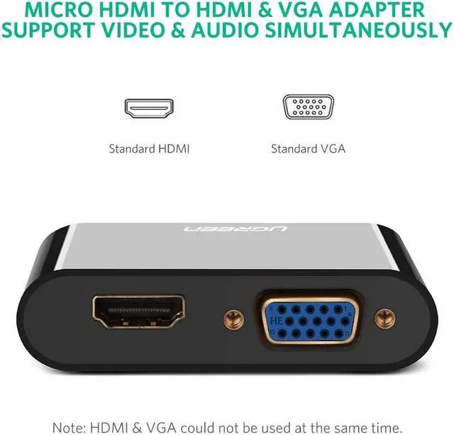• Micro HDMI to VGA Adapter connects Micro HDMI compatible devices with a Micro HDMI output to HDMI & VGA equipped monitors and displays with HDMI or VGA male to male cable this versatile adapter provides a convenient solution for displaying video or other content on a larger display.