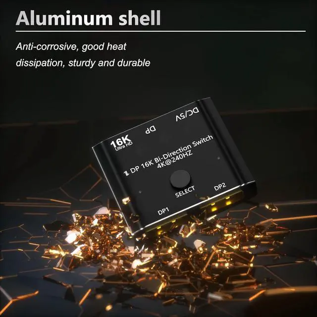 - 16K Ultra HD Video Output: Our displayport switcher splitter box supports 16K@60Hz, 8K@60Hz, 4K@240Hz resolution and HD audio, the display port switch box will brings you a luxurious and wonderful audio-visual experience. The maximum resolution and refresh rate you get depends on your source device, monitor, DP cable, converter and other hardware devices.