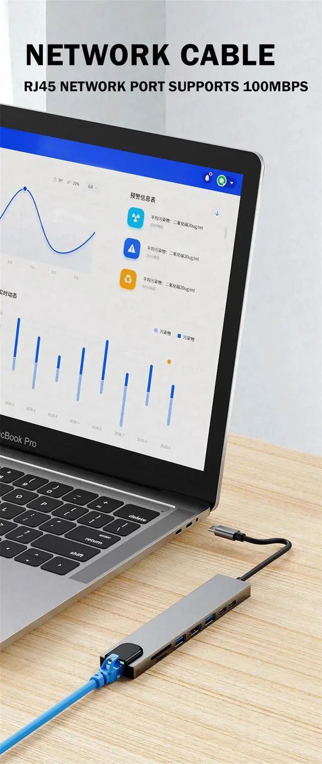 - USB C HUB 8 IN 1: USB-C hub adapter is compatible with all devices that include Type-C/USB ports, especially for MacBook Pro and Air. 8-in-1 USB-C HUB includes USB 3.0port, USB 2.0 port, USB C port, PD port, 4K HDMI video output, RJ45 100M Ethernet interface and SD / Micro SD card reader slots, compatible with MacBook Pro / Air, Chromebook and more Type-C devices. So that you can solve the problem of a single laptop interface anytime and anywhere.