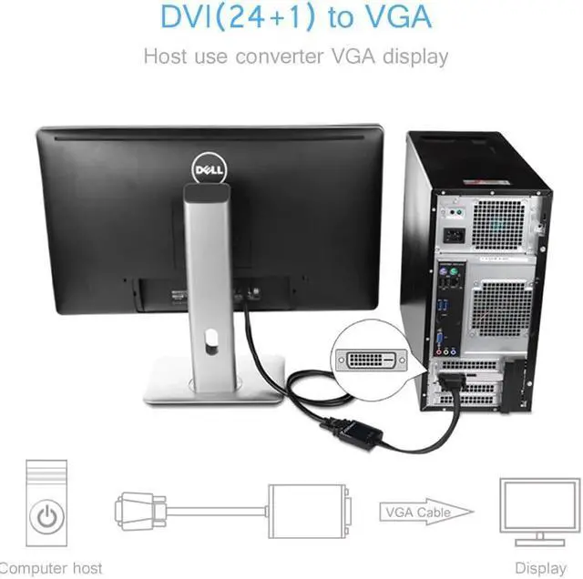 Active DVI-D to VGA Converter connects desktop computers and laptops (major brands like Lenovo, Dell, HP, ASUS, etc. ) with DVI-D to VGA displays, supporting HDTV resolution up to 1080p @60Hz and PC graphics resolutions up to 1920 x 1200 @60Hz. It is ideal solution for your office, home entertainment display, etc. without upgrading them.