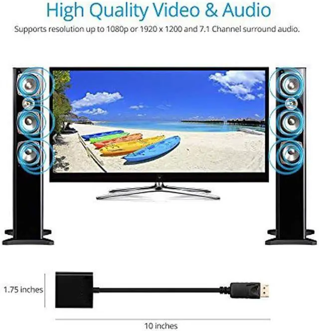 The DisplayPort to HDMI Adapter - For connecting DisplayPort equipped computer systems to HDMI equipped monitors, providing optimal video quality up to 1080p HDTV or 1920 x 1200 PC graphics. It is a cost-effective solution to allow your DisplayPort computer to work with the HDMI display for business, home entertainment, conference rooms, and more.