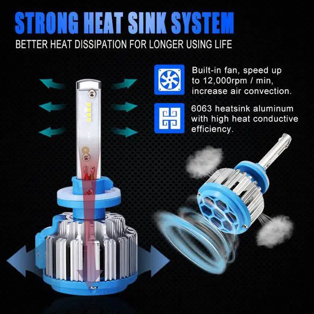 Powerful Turbo Cool fan to ensures your LED Headlight bulbs Over 50,000 hours of brilliant continuous light. Heat sink stays 30% cooler than standard.