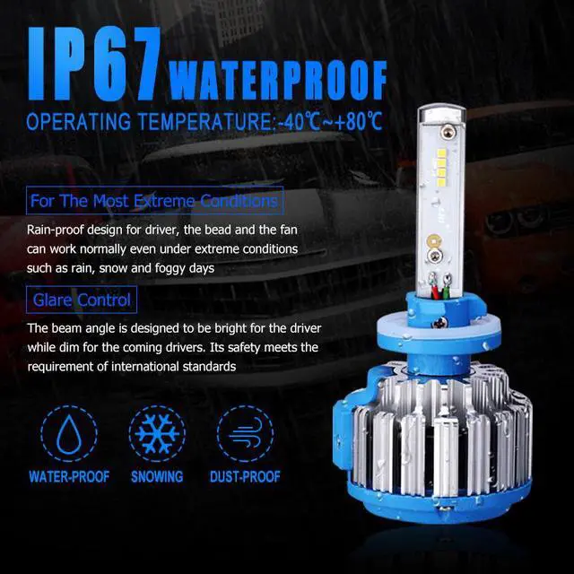 6000K Cool White, 12,000 RPM High-speed IP67 Waterproof Turbo fan is employed to effectively control heat ensuring continuous full lumens output.