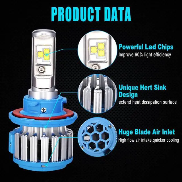 Powerful LEDs provide 7200 lumens(3600LM per bulb)output, producing bright light for increased visual field and distance visibility in darkness and gloom.