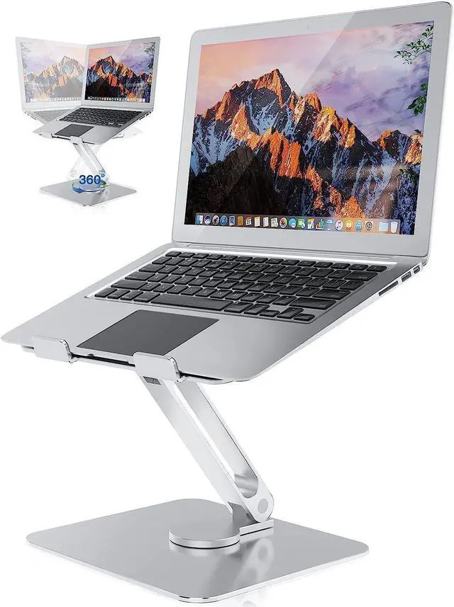 & Ergonomic Design: The laptop stand Featuring a 360° rotatable Two-axis connecting with the base, allowing you to rotate the laptop to any angle. You can freely adjust the height and angle of the laptop stand to make it reach the perfect eye level and help to reduce shoulder and neck pain. Which ensures that you are in a comfortable position when sitting down or standing up.