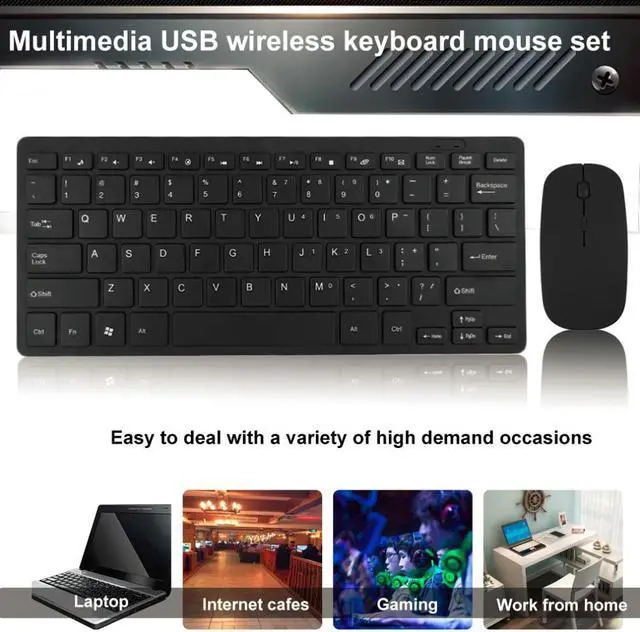 ESTONE 2.4G Wireless Keyboard and Mouse Combo, Keyboard and Mouse Mini Multimedia Keyboard Mouse Combo Set For Notebook Laptop Mac Desktop PC TV Office Supplies-Black