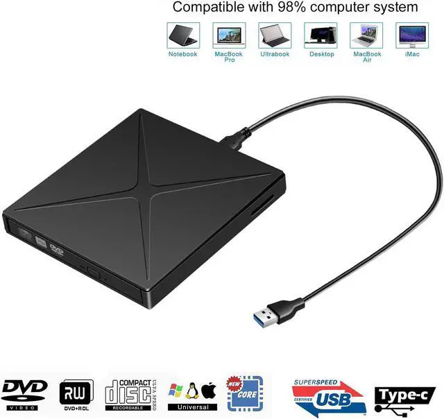 The CD-ROM drive adopts the advanced recording technology that supports DVD + R DVD CD-ROM DVD-ROM CD-R CD-RW. The maximum DVD reading speed is 8 times, and the maximum CD reading speed is 24 times, the maximum CD burning speed is 8 times, our external DVD drive is compatible with USB3.0 and USB2.0 and USB1.0 allowing you to play music and movies at a faster data transfer speed (maximum 5Gbps) without lag or distortion Backward compatible