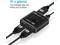 1. This is a 2 in 1 out switcher, not a splitter, and it cannot be used as 1 in 2 out.