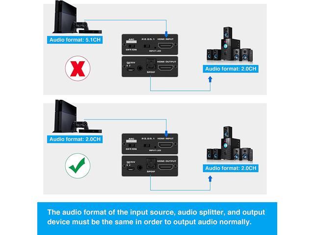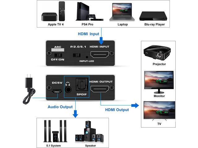 4K@60Hz HDMI Audio Extractor,Aluminum Shell HDMI to Optical 3.5mm SPDIF Audio Adapter Splitter Converter Supports HDCP Dolby 4K 1080P 3D Compatable for PS3 Xbox Fire Stick (OZV8-1)