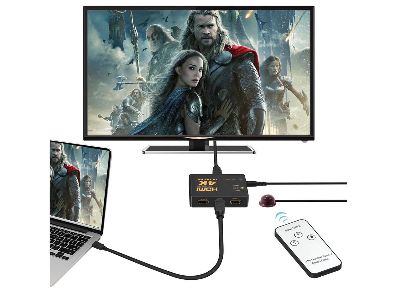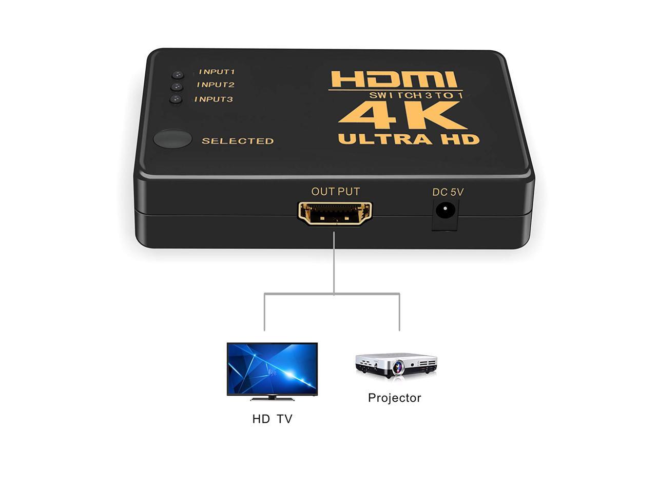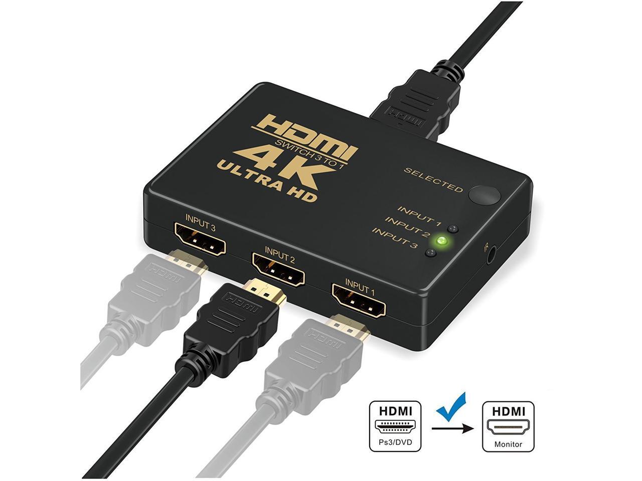 - Ran out of HDMI ports on your HDTV/monitor/projector? What a mess of cables? This 3x1 HDMI switch with infrared remote control will take care of these problems. It has 3 HDMI input sources to switch at ease with the infrared remote control in a distance away. A button to manually switch between the 3 sources is also built-in. The ports are plated with 24K Gold, Resisting corrosion and reducing tarnish