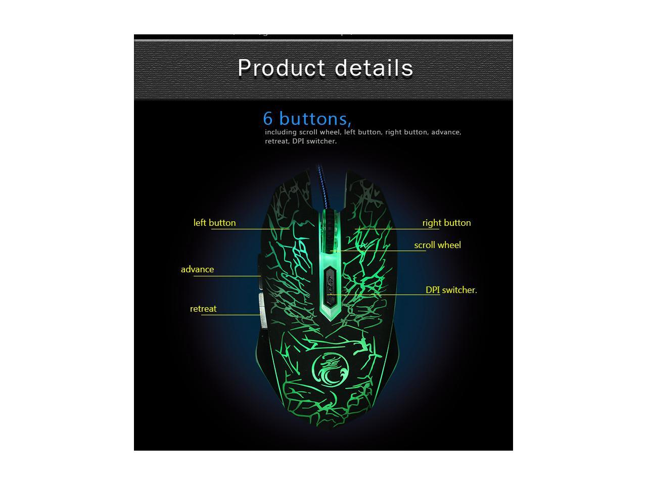 - Ajustable DPI Switch: 800-1600-2400-3600DPI