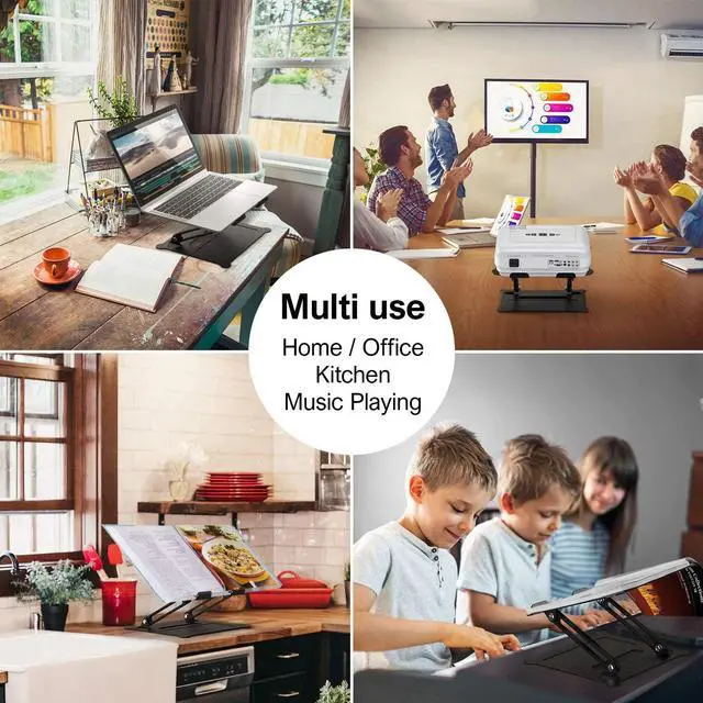 | Features | Foldable & Portable: This laptop stand could be adjustable in height and angle of your laptop for your healthy body posture to minimize neck fatigue or spine problems. No tools needed for adjustment, just a push or a pull depending on you need.Also it is foldable for easy storage and designed handle hole for easy carrying Sturdy & Stable: It is made of quality aluminum alloy, heavy duty,stable and sturdy, support up to 13 lbs(6kg) but no worry any wobble. The silicone pads on the holder topare durable and non-slip, which protects the computer from scratch and sliding off. The silicone pads at the bottom of the bracket ensure the product stand stable even when typing. Featured & Special: The specially processed aluminum alloy material, looks neat and delicate, easy to clean, rust-proof; scratch-proof, the heat conduction alloy and ventilation hollow design, work together to cool down your computer and prevent overheating. The uniquely designed storage groove in the bottom panel makes a holding space for the accessories such as cell phone, USB storage, IPAD pen, wireless mouse etc. or the stationery such as pen, eraser, stapler etc. Muti-Use & Practical: Multi-use in many occasions such as office, meeting room, library, coffee shop, kitchen and music playing house to hold the laptops, tablets, projectors, menu, music books, magazines etc.. An excellent useful gift for your friends and family. Widely Device-Compatible: The laptop riser fits all laptops 10 to 17 inches, such as notebooks PC computers 10 inches, 11 inches, 12 inches, 13 inches, 13.3 inches, 14 inches, 15 inches, 15.4 inches, 15.6 inches, 17inches etc. Buy now and enjoy now! |