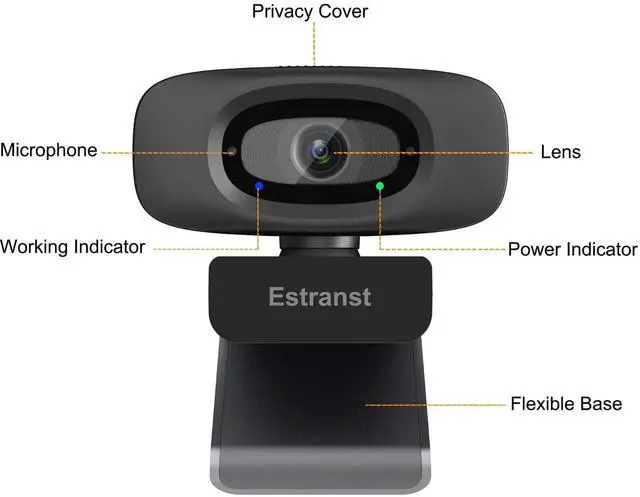 Estranst 1080P Webcam for PC Laptop MacBook Computer Desktop, with Microphone & Privacy Cover & USB C Adapter