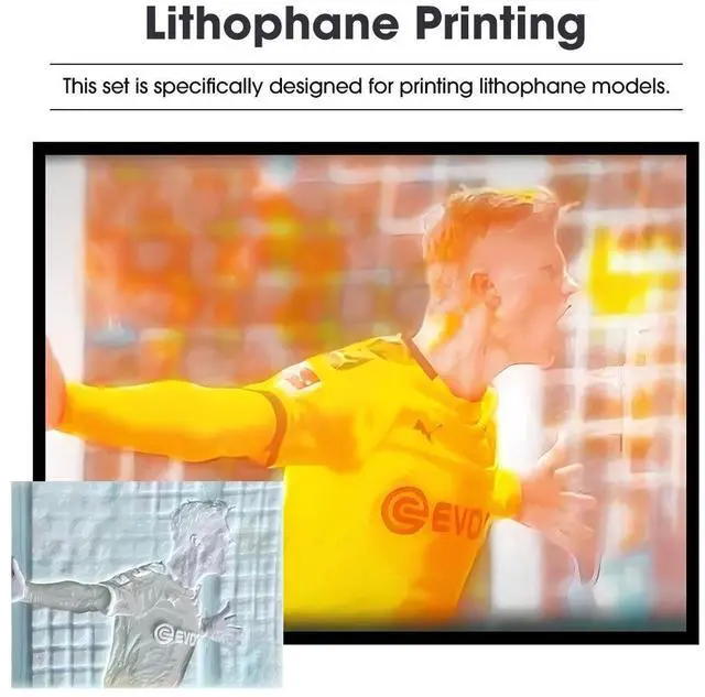 Lithophane Printing CMYK PLA+ FilamentCMYK PLA+ refer to PLA combinations of Cyan, Magenta, Yellow and White. Based on the principle of color mixing, various colors are obtained by superposition of these four colors. Different from black and white Lithophane, this CMYK PLA+ can create colorful Lithophane Printing and record the good memories in the life. Please notice this is only one color (1kg) not 4kg.