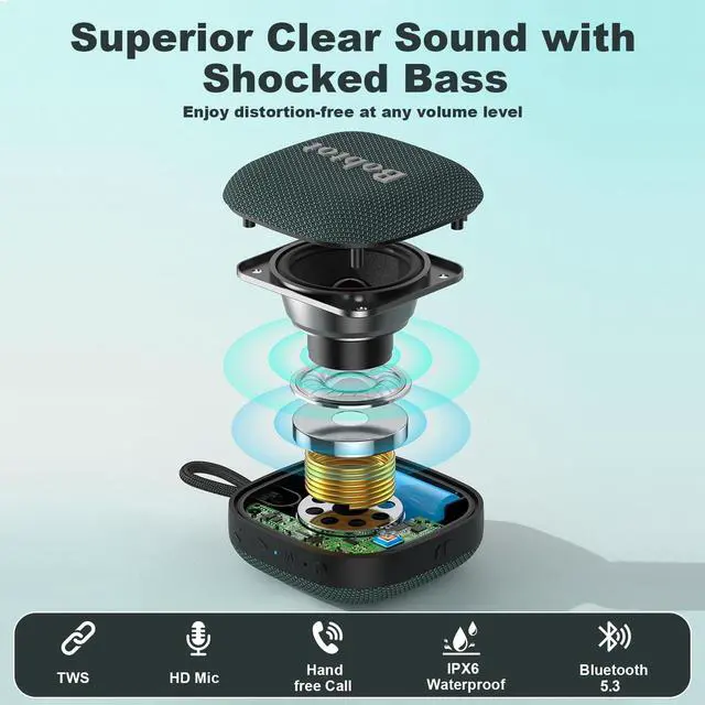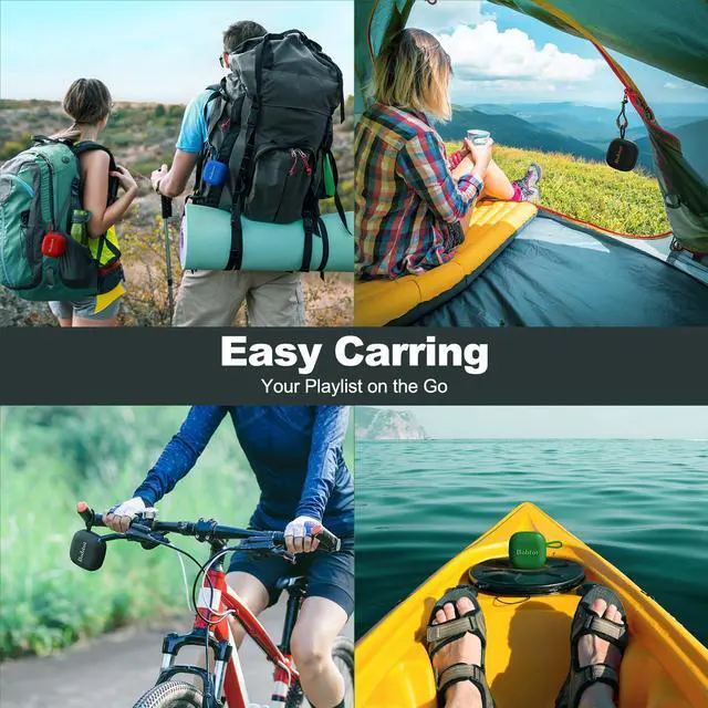 Design for biking, hiking, camping, kayaking etc. The speaker is waterproof can withstand water, sand, and whatever comes your way