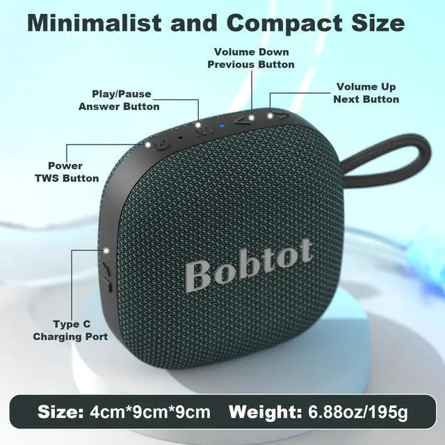 Pair two Bobtot SoundAir Portable Bluetooth Speakers for an immersive surround sound experience. Double the sound, double the fun.