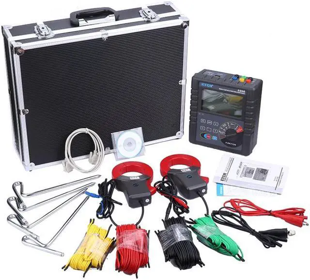ETCR3200 Double Clamp Earth Resistance Tester, through a variety of methods measuring earth resistance (range: 0.01O ~ 30.00 kO), soil resistivity (range: 0.01Om ~ 9000kOm), earth voltage (range: 0.1 V ~ 100.0 V), grounding lead leakage current, AC current (range: 0.01mA ~ 600A); The tester adopts the precision 4-wire method, 3-wire method, simple 2-wire method, selection method and double-clamp method to measure grounding resistance. Large caliber current clamp design, can measure the grounding system which using large grounding down lead.It can flexibly and accurately measure arbitrary grounding resistance values of single point and mesh grounding and other complex grounding conditions. When measuring parallel grounding, it is unnecessary to disconnect any parallel grounding electrode to maximize the convenience of measurement. Import FFT (fast Fourier transform) technology, AFC (automatic frequency control) technology, ensure the measurement of high precision, high stability and reliability.