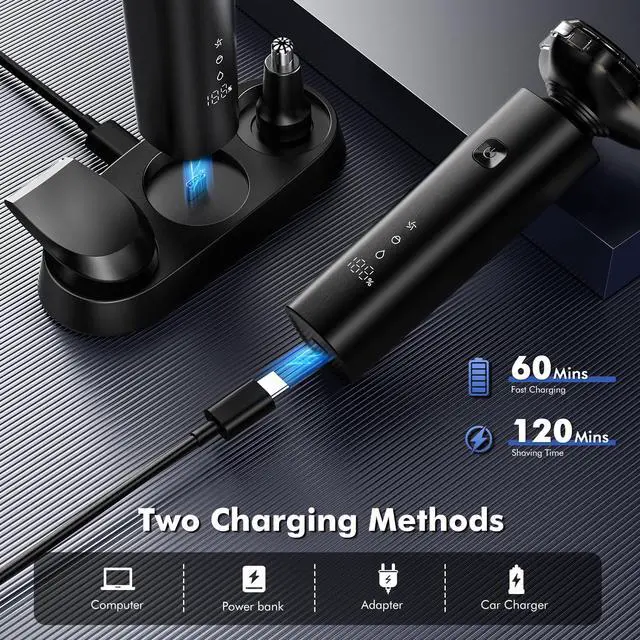 - The mens electric razor with IPX7 waterproof, Use it comfortably in the shower with your favorite shaving gel or foam.
