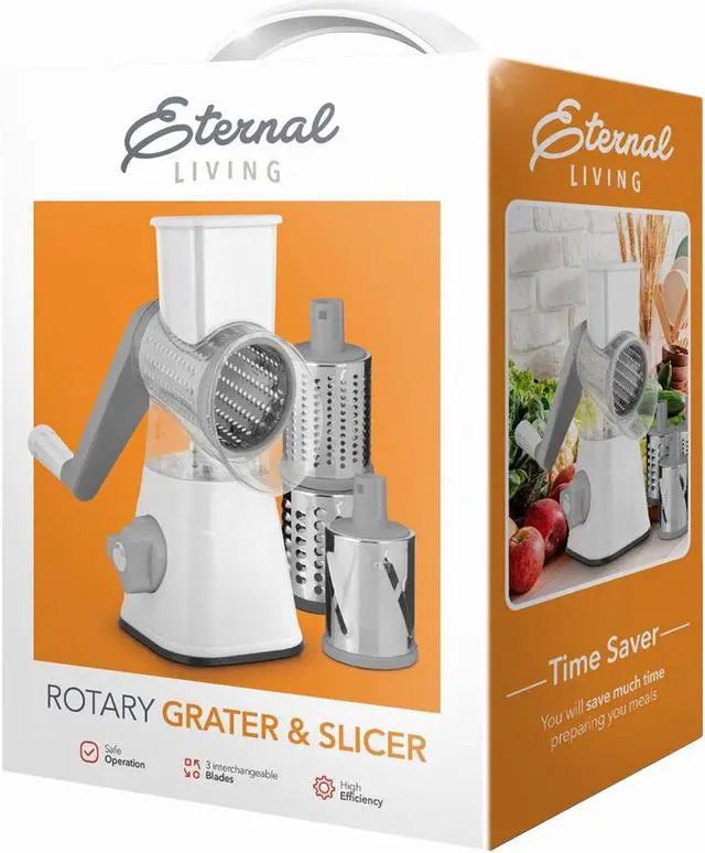 Eternal This vegetable slicer is extremely helpful in the kitchen at home for cutting fruits and vegetables. Things can be sliced quickly and neatly including potato squash carrot cucumber onions garlic cabbage tomato cheese etc. Its made of 100 percent BPA free reinforced abs. And the oversized suction pad on the bottom holds great on most countertops when youre cutting vegetables. Ideal for grated cheese get sliced cheese with the slicer blade for very very thin slices perfect for melting. Sliced celery and carrots are both super fun and easy. Chopped pecans with the coarse grating tumbler.