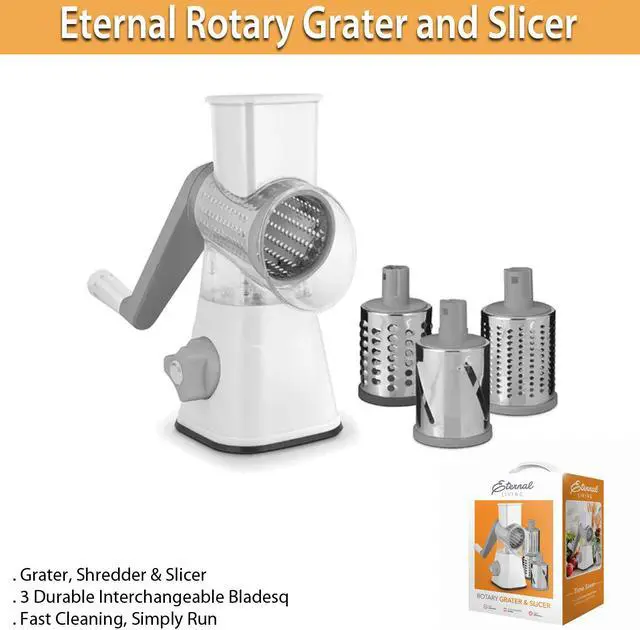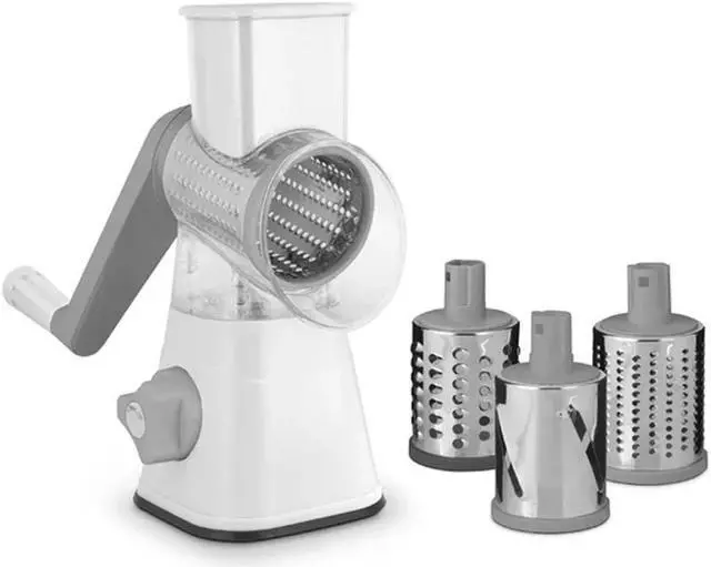 The cheese shredder is perfect for cheese hash browns potatoes veggies radishes carrots zucchini cookies and more Set includes 1 coarse shredding blade 1 slicing blade 1 fine shredding blade Recommended cleaning with a cleaning brush. White Plastic