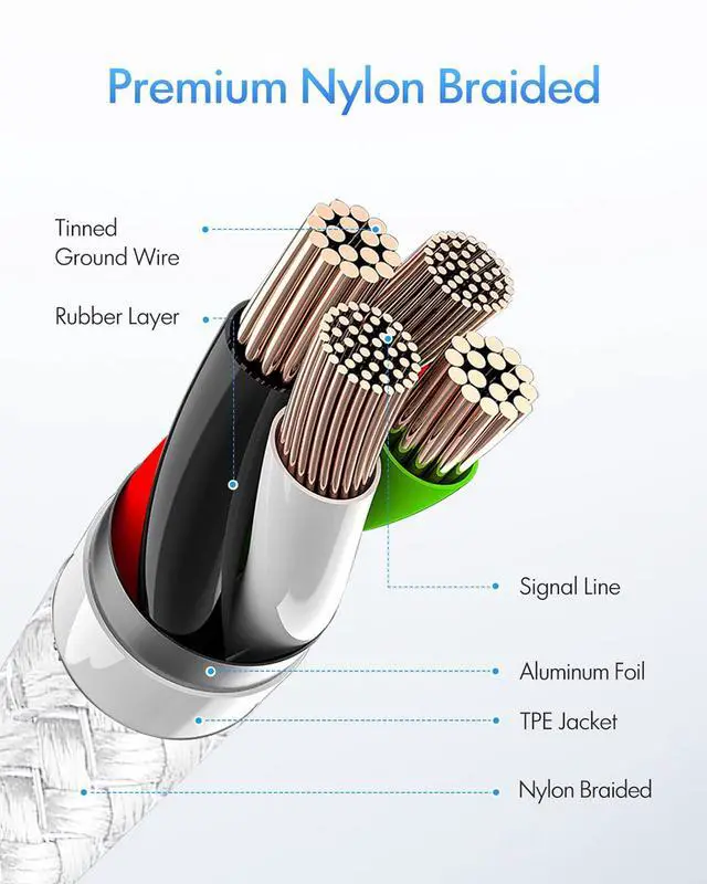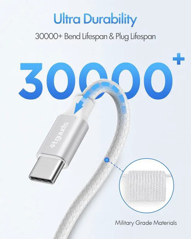 Premium Nylon Braided adding additional durability and tangle-free, can bear 20000+ bending test. Strong military fiber make it flexible.Unique laser welding technology make the connector prevent from broken.